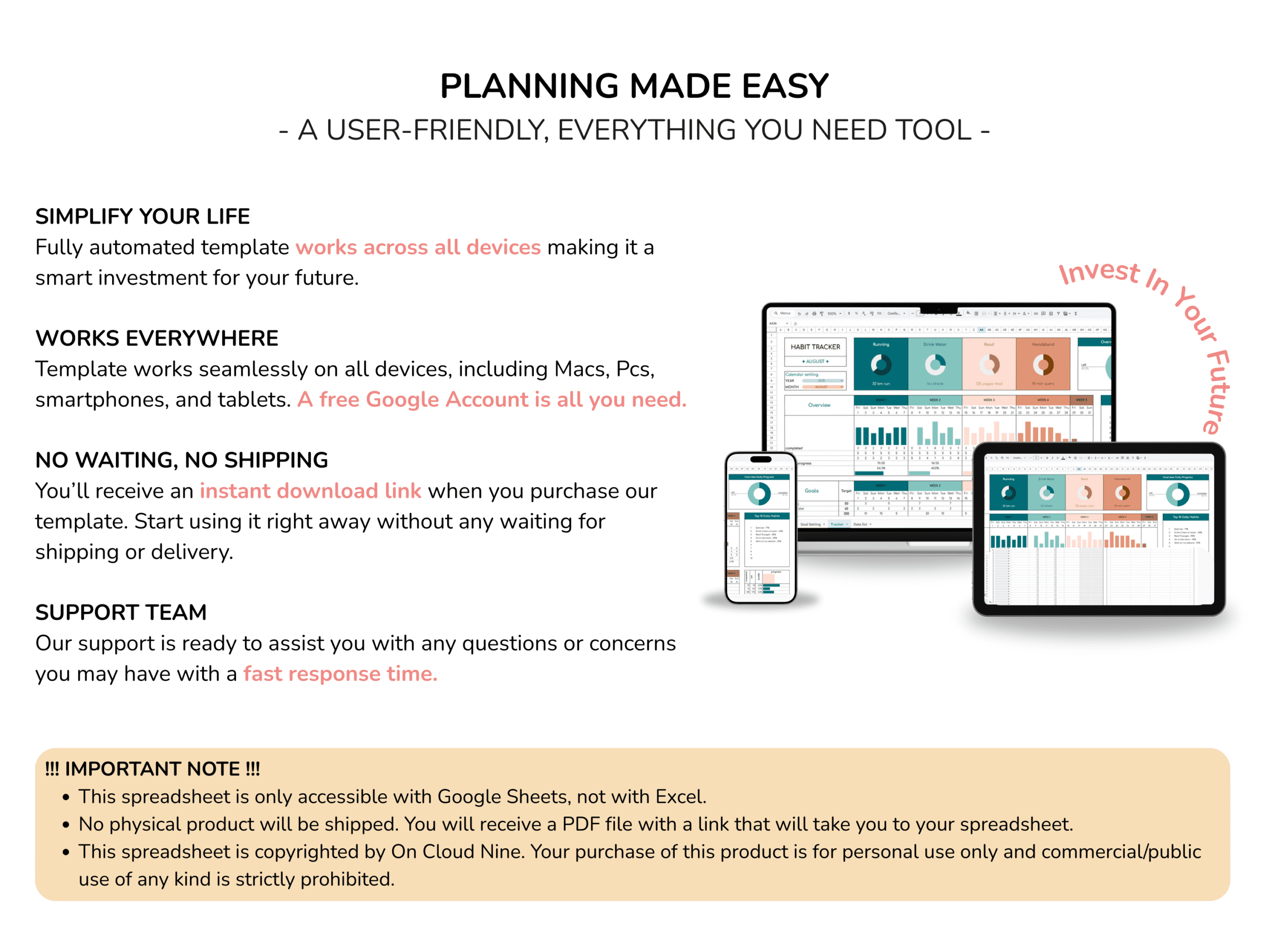 - Please be aware that this digital product is only compatible with the Google Sheets website and/or app.