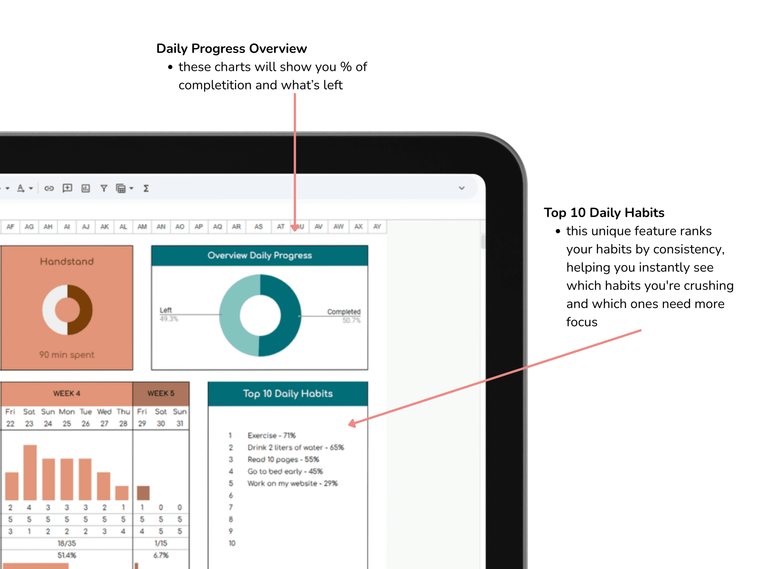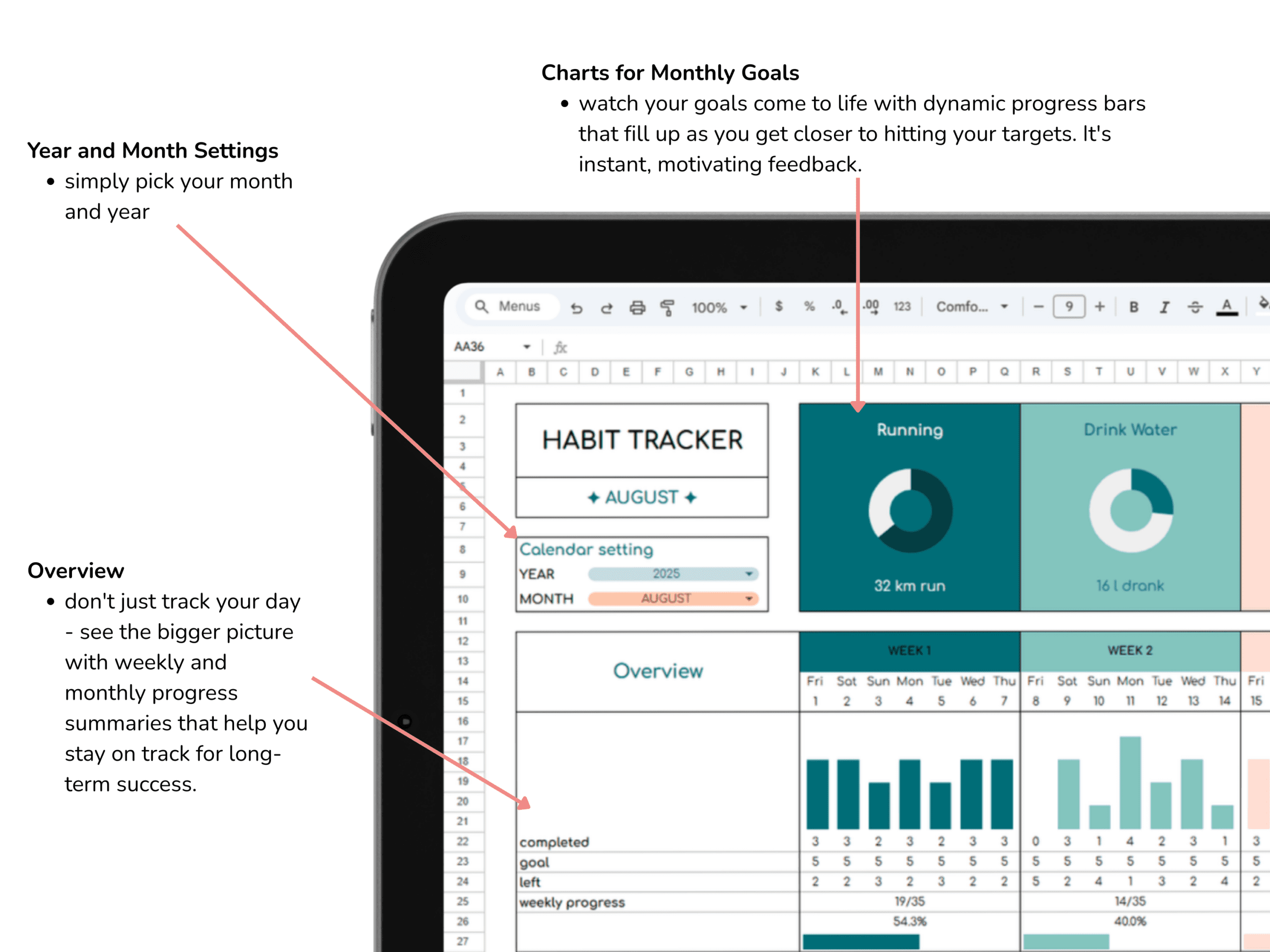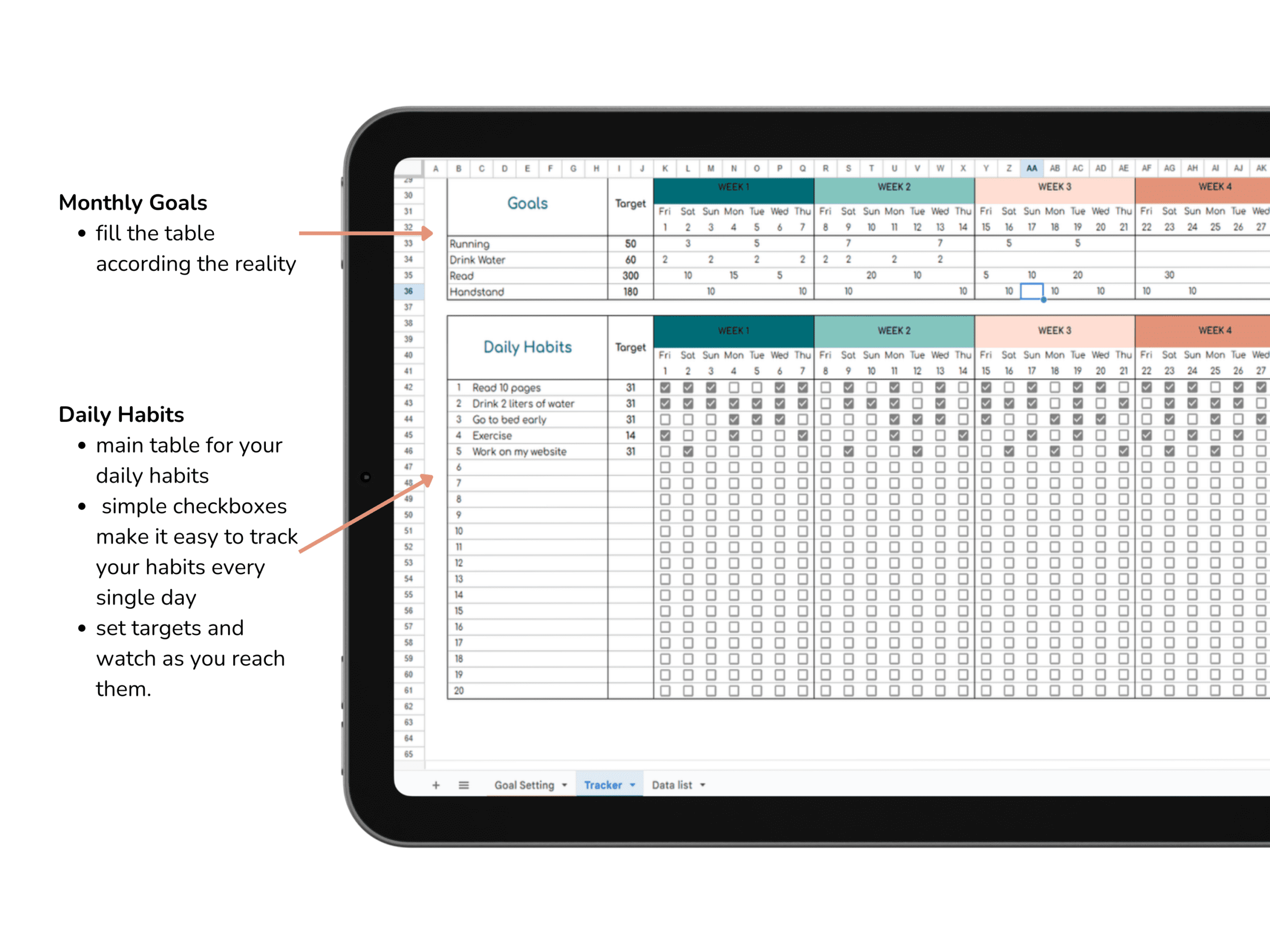 This habit tracker Google Sheets template is ideal for: